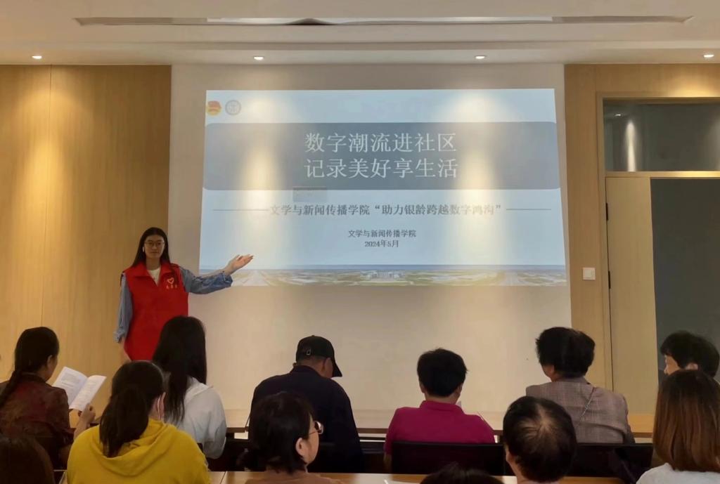 随着网络时代的快速发展,数字化技术已经深入到我们生活的每一个角落,成为现代生活中不可或缺的一部分。为更好地助力老年人跨越数字鸿沟,让老年群体享受到科技飞速进步所带来的便利,5月10日,文学与新闻传播学院走进学府社区开展数字潮流进社区,记录美好享生活”助力银龄跨越数字鸿沟社会实践活动。