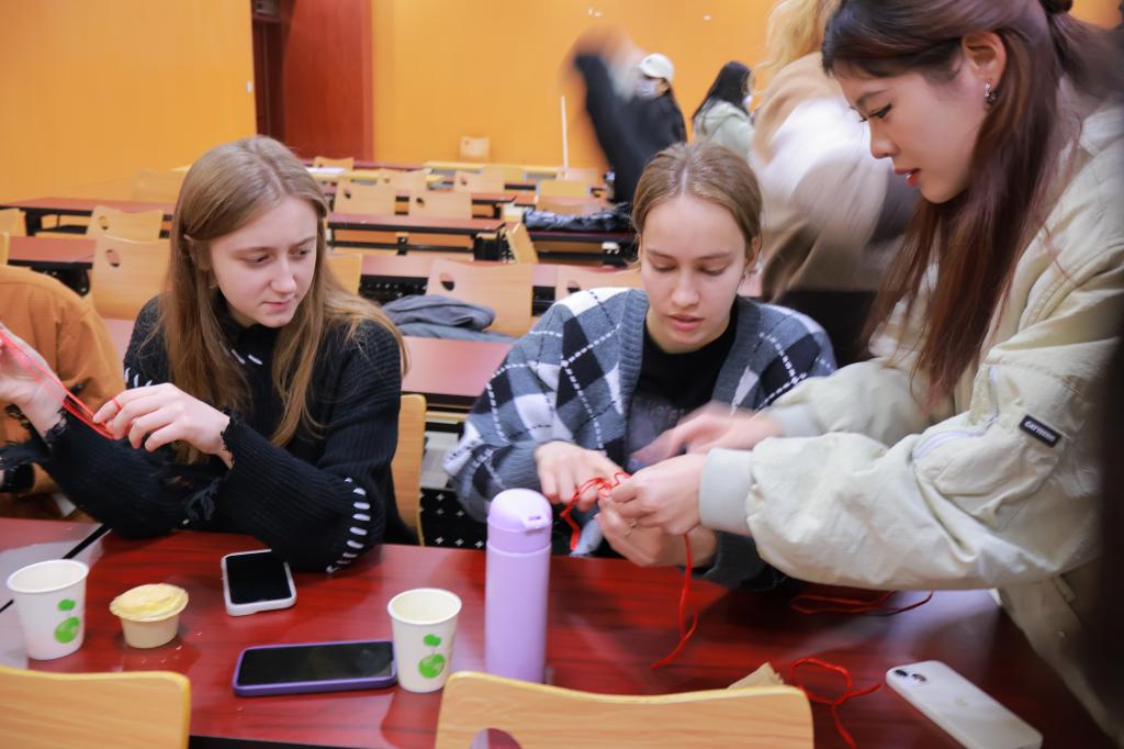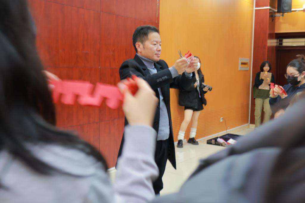 此次活动旨在增进太阳成集团tyc7111cc中国学生与留学生的友谊交流,同时展示中国优秀传统文化的魅力。活动开始,23汉教的同学们轮流献上精彩的演出,一首《最炫民族风》让现场气氛高涨,中国古代文化吟诵《一剪梅》等节目让现场的观众感受到了中华文化的独特魅力,同学们收获满满。随后,剪纸非遗传承人张建志老师和他的助理徐延芳老师向全体参与活动者展示了复杂美丽惟妙惟肖的剪纸作品,同学们积极地向老师提问,现场互动格外活跃,同时他们还体验了如何编织中国结,体验之余,《你画我猜》《abcd》《大小西瓜》等游戏依次展开,同学们在活动中展现才华和热情,也在互动中加强与各国青年的友谊交流。