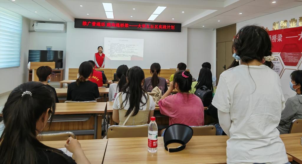 本次活动的主题是“推广普通话,建沟通桥梁”。在宣讲活动开始前,团支部成员首先通过一则趣味小故事,引入为什么要学好普通话的话题。普通话是素质教育的重要内容,使用普通话进行交际,既有利于培养爱国主义情操,又能增强民族凝聚力。在活动中,团支部成员带领社区居民开展互动小游戏,如基础知识问答和趣味绕口令等等。游戏结束后,参与人员受益匪浅。社区居民纷纷表示,在积极参与活动、体验乐趣的同时,也体会到了说好普通话的意义和重要性。活动最后,团支部成员与参与活动的社区居民一起合影留念。