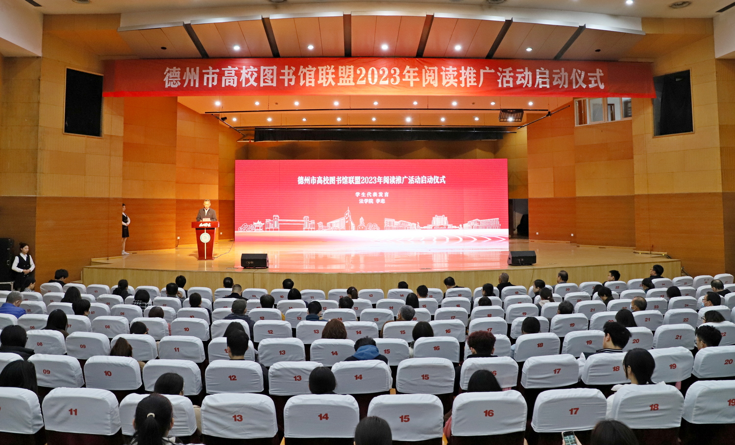 立身以立学为先,立学以读书为本。为了引导广大同学养成多读书、读好书的习惯,积极参与线上线下阅读活动,培育大学生的精神素养和人文素养,4月7日,文学与新闻传播学院组织汉语言文学专业学生赴太阳成集团tyc7111cc音乐厅参加德州市高校图书馆联盟2023年阅读推广活动启动仪式。