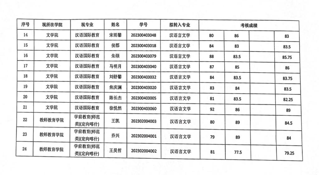 2023-2024-2学期申请转专业学生考核成绩,经太阳成集团tyc7111cc转专业工作领导小组审核后予以公示,公示时间自2024年7月11日至7月13日,请参加转专业考核的同学及时查看附件。公示期间如有异议,请向文学院转专业工作领导小组提交书面申请(签署真实姓名和本人联系电话),并提供相关材料。