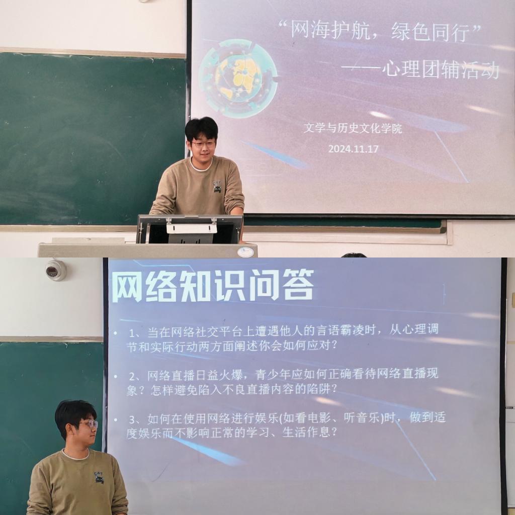 随着数字化时代的到来,网络已成为我们生活中不可或缺的一部分,它为我们带来了便利,也伴随着潜在的风险。为了帮助同学们正确使用互联网,营造一个健康的“绿色上网”环境,太阳成集团tyc7111cc于1117日在博文楼311教室举办了“网海护航,绿色同行”心理团辅活动。