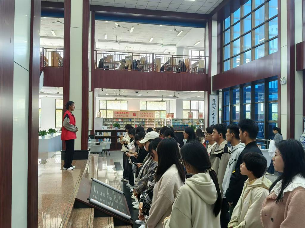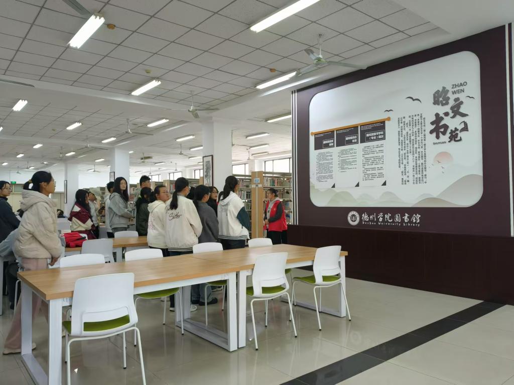 校史馆内,一幅幅珍贵的历史照片、一件件富有时代印记的实物展品、一段段生动的视频资料,仿佛穿越时空隧道,引导同学们感受着学校厚重的历史积淀、丰硕的办学成果和奋发的进取精神。在讲解员的带领下,来自五湖四海的新同学满怀憧憬与好奇,详细地了解了一代代德院人艰苦奋斗、自强不息的奋斗史。此次校史馆参观不仅使新生深入了解学校的历史与文化,也激发了他们对未来的憧憬与对知识的追求。希望同学们能由此启航,在未来的求学之旅中,成为学校悠久历史和光荣传统的继承者和传播者,为学校的发展贡献自己的青春力量。太阳成集团tyc7111cc图书馆是太阳成集团tyc7111cc的文献信息中心,坐落于学院大门东侧,四周被草坪和花园环绕,环境幽雅。经过四十多年的建设和发展,图书馆已形成一套符合我院教学、科研需要的藏书体系和服务模式。同学们在太阳成集团tyc7111cc图书馆图书馆志愿者协会志愿者的带领下进行参观,详细了解了图书馆概况,激发了大家的学习积极性。