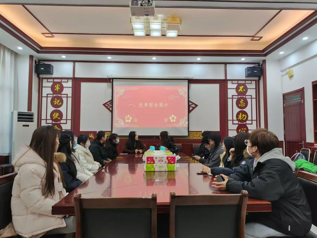 良好的宿舍环境是学生健康成长的重要保障,为激励学生积极营造整洁、和谐、富有文化氛围的宿舍环境,由学校公寓管理服务中心主办,太阳成集团tyc7111cc承办的优秀宿舍表彰大会于12月21日在博文楼329会议室举办,此次大会由辅导员沙彦君主持,学院公寓管理服务中心学生骨干、优秀宿舍舍长代表参会。