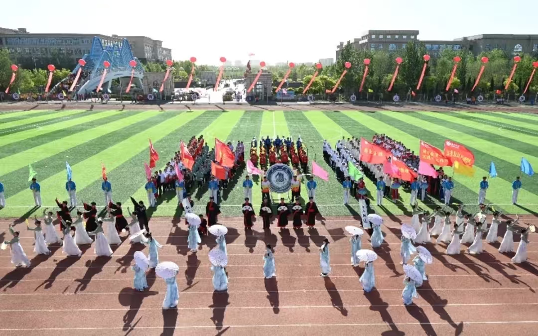 24日上午,在激昂的进行曲中,运动会开幕式正式拉开帷幕。各方队迈着整齐有力的步伐依次入场,我院方队身着传统服饰惊艳亮相,衣袂翩跹间尽显人文底蕴,油纸伞开合中漫溢诗意风华,将"文以载道"的精神融入铿锵步伐,展现了蓬勃向上的青春朝气。团体操表演环节精彩纷呈,我院学子与马克思主义学院、外国语学院及能源与机械学院携手带来表演《中国梦·德院情》,节目以翻飞的红绸、舞动的黄扇为视觉元素,生动展现了新时代青年对祖国和德院的深情礼赞;随后进行的千人广播体操表演,各学院学子动作整齐划一、朝气蓬勃,以青春律动诠释了团结协作的体育精神。