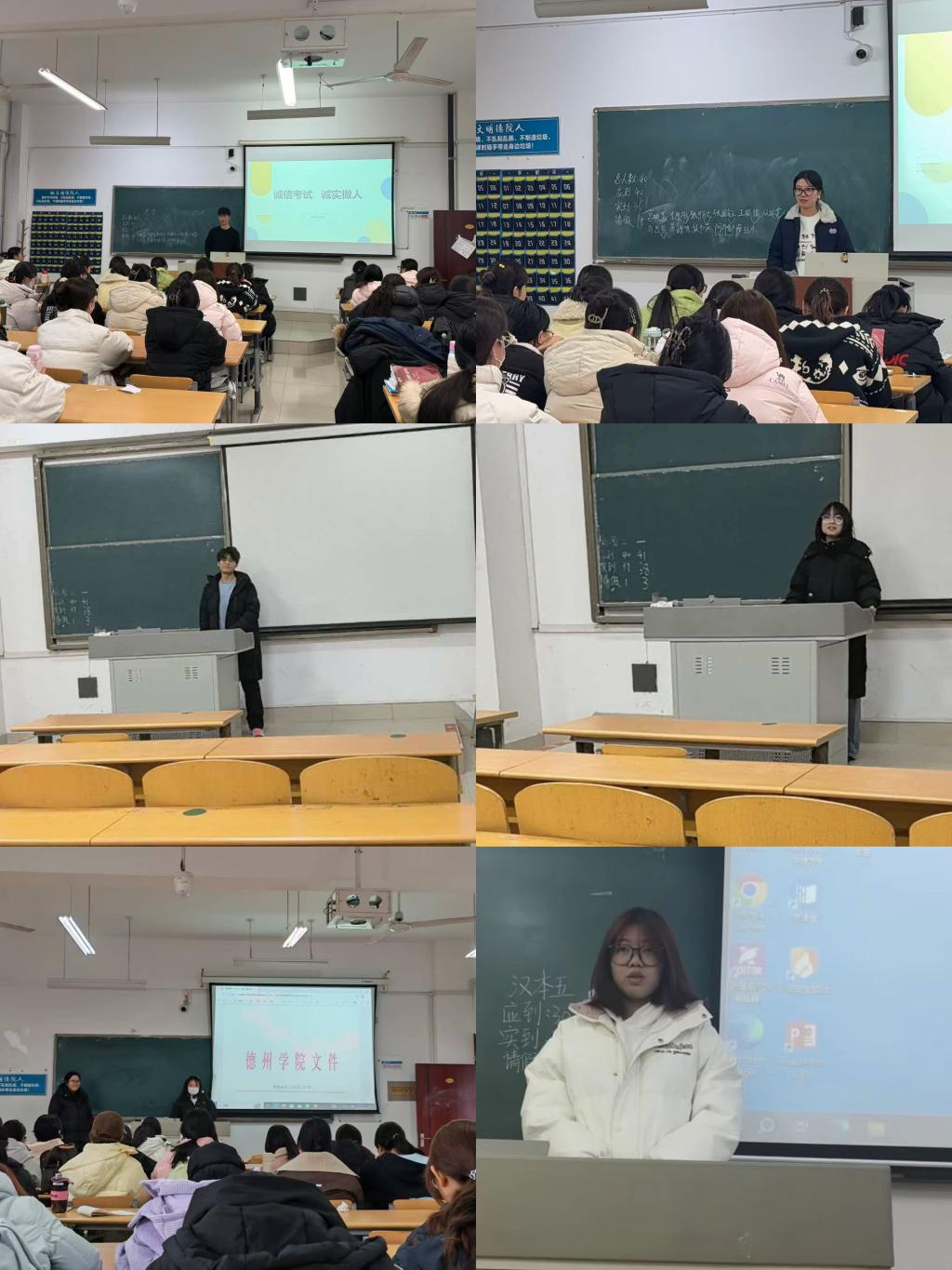 各班级召开“诚信立身・诚信立学”主题班会,深入学习《太阳成集团tyc7111cc学生违纪处分条例》。各班代表结合自身感悟分享心声,师生共同参与文件解读、现实案例剖析环节,在互动交流中持续强化全体学生的规则意识。同学们郑重签署《诚信考试承诺书》,各班推荐代表针对诚信考试进行表态,以庄重的仪式感固化诚信承诺,让“守信应考”的理念入脑入心。通过微信公众号、班级群等渠道同步推送警示清单与纪律要求,增强学生对考试纪律的敬畏意识。
