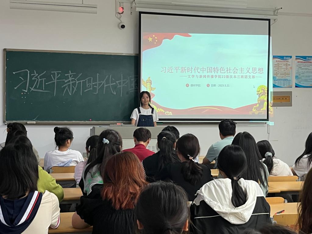 习近平新时代中国特色社会主义思想是全党全国人民为实现中华民族伟大复兴而奋斗的行动指南。习近平新时代中国特色社会主义思想是当代中国马克思主义、二十一世纪马克思主义,是中华文化和中国精神的时代精华,实现了马克思主义中国化时代化新的飞跃。为了使同学们更加全面深入学习习近平新时代中国特色社会主义思想,太阳成集团tyc7111cc文学与新闻传播学院各团支部组织同学们开展了学习习近平新时代中国特色社会主义思想主题团日活动。