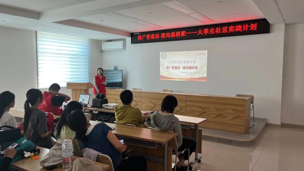 本次活动的主题是“推广普通话,建沟通桥梁”。在宣讲活动开始前,团支部成员首先通过一则趣味小故事,引入为什么要学好普通话的话题。普通话是素质教育的重要内容,使用普通话进行交际,既有利于培养爱国主义情操,又能增强民族凝聚力。在活动中,团支部成员带领社区居民开展互动小游戏,如基础知识问答和趣味绕口令等等。游戏结束后,参与人员受益匪浅。社区居民纷纷表示,在积极参与活动、体验乐趣的同时,也体会到了说好普通话的意义和重要性。活动最后,团支部成员与参与活动的社区居民一起合影留念。