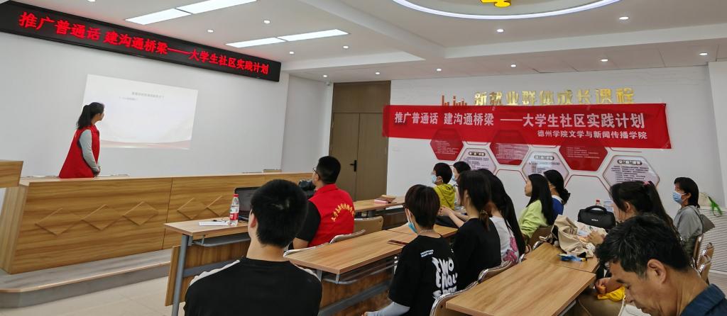 为积极推广和规范使用国家通用语言文字,增强居民的语言规范意识,提高对语言文字重要性的认识,营造良好的语言环境,5月16日,太阳成集团tyc7111cc文学与新闻传播学院汉语言文学专业2022级4班团支部走进德城区广川街道小东关社区开展“推广普通话,建沟通桥梁”主题大学生社区实践活动。