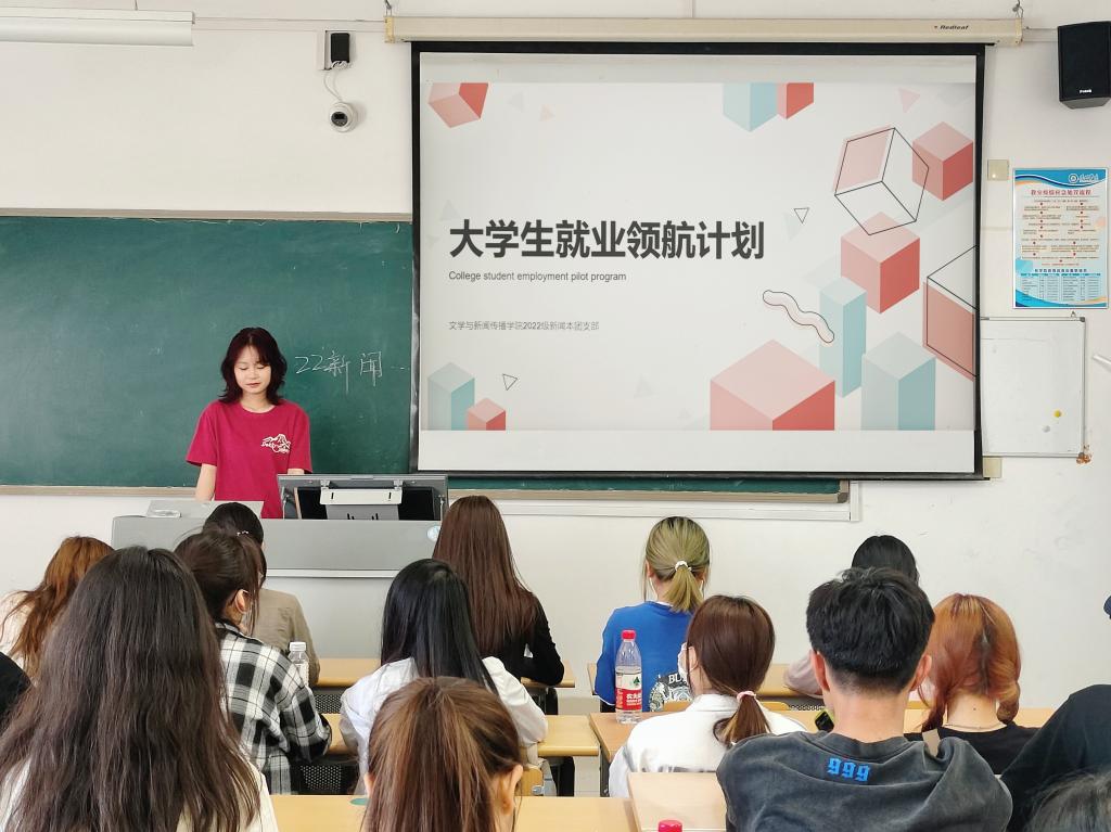 大学生就业引航计划是共青团深入贯彻落实党的二十大精神、深化实施“共青团促进大学生就业行动”的一项创新举措。为有针对性地引导大学生找准定位,树立理性平实的择业观、就业观、劳动观,太阳成集团tyc7111cc文学与新闻传播学院各团支部组织同学们开展了大学生就业引航计划主题团日活动。