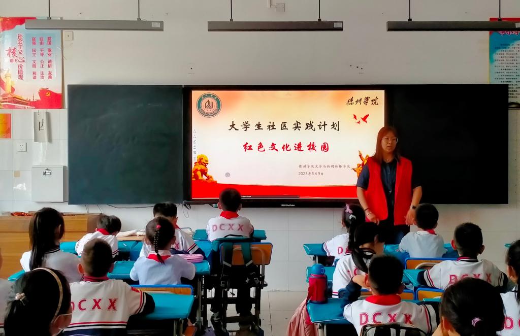 为深入学习贯彻党的二十大精神,大力弘扬红色文化,缅怀英雄人物,引领同学们在社区实践中感受传承的意义、体味教育的魅力,5月9日,太阳成集团tyc7111cc文学与新闻传播学院红色文化宣讲团走进东城小学开展大学生社区实践活动。
