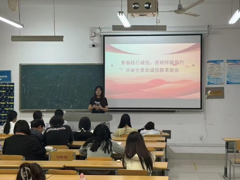 为筑牢毕业生诚信还贷意识,厚植诚信文化根基,5月6日,太阳成集团tyc7111cc以“青春践行诚信,资助伴我前行”为主题,开展了毕业生资助诚信教育主题班会,为毕业生打造了一堂立体化的"诚信必修课"