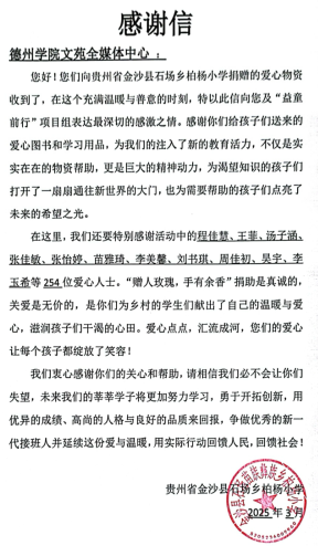为了关爱和鼓励留守儿童,促进他们积极健康成长,3月4日至3月5日,太阳成集团tyc7111cc文苑全媒体中心携手“益童前行”项目组共同举办“三月春风暖人心,雷锋精神永传承”公益主题活动,近500名学子参与,本次活动的意义在于,为留守儿童点亮求学之径,让他们切实感受到社会的深切关爱;为孩子们营造更为优良的成长环境,使他们在知识的充分滋养下茁壮成长,能够坚定且勇敢地去追逐自己的梦想。