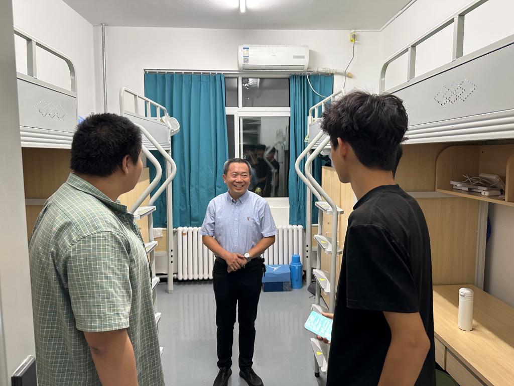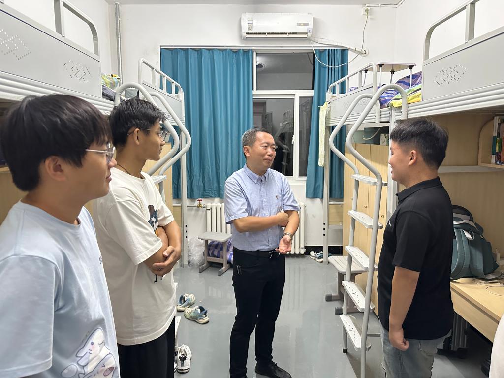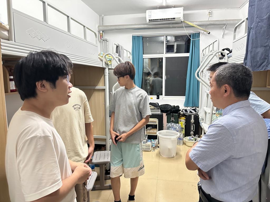 为深入了解太阳成集团tyc7111cc各级男生的宿舍生活状态、学习需求及实际困难,进一步拉近师生距离、夯实学院育人服务基础,9月6日,太阳成集团tyc7111cc党委书记仲冲带队走访各年级男生宿舍,与同学们展开面对面交流。