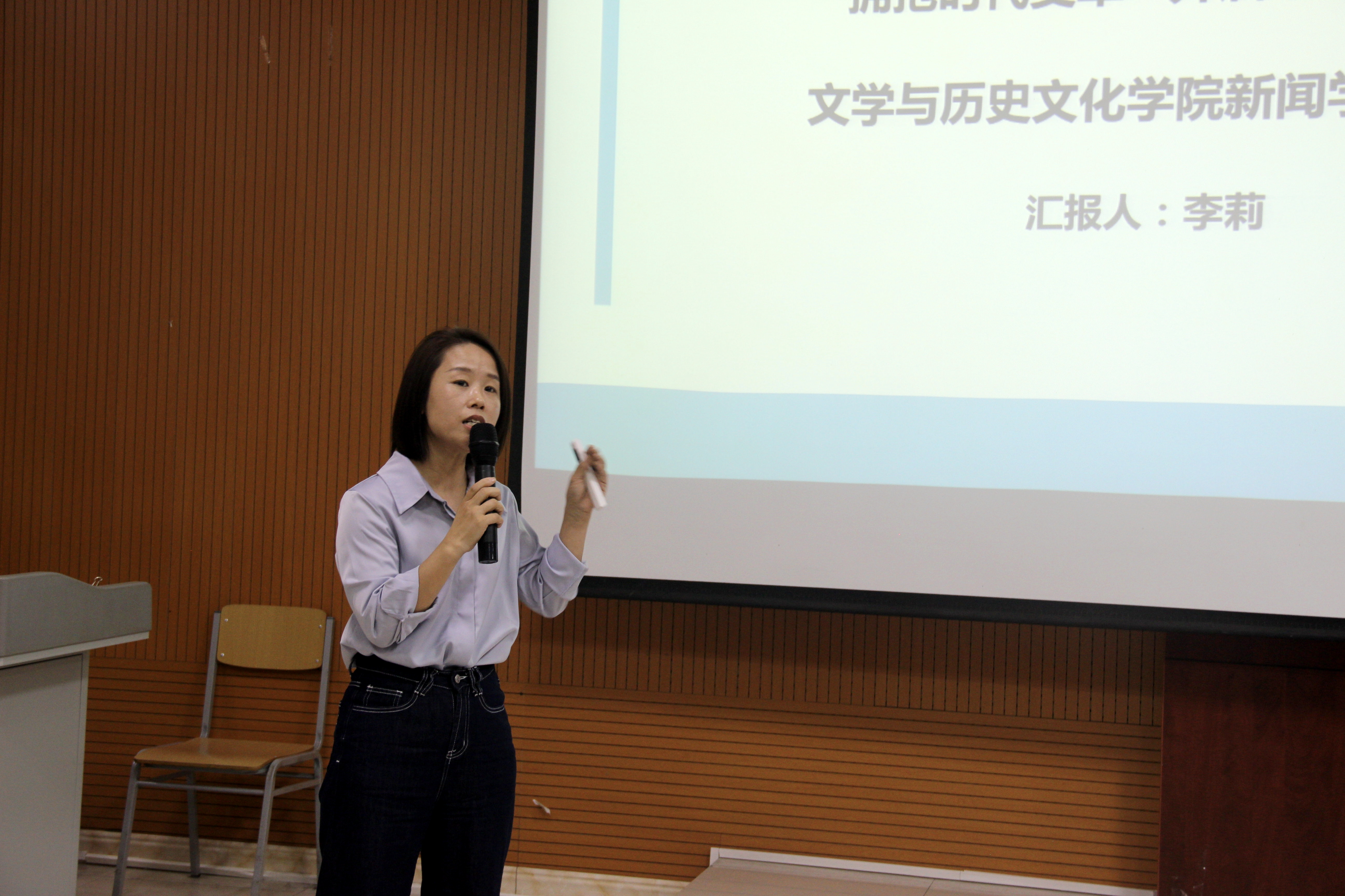 开场环节通过学院宣传视频展示了学院的发展历程、教学成果与校园文化。仲冲代表学院向全体2025级新生表示热烈欢迎,并系统介绍了学院的历史沿革、学科建设现状和人才培养体系。教师代表张倩萌老师结合自身教学与科研经历,分享了大学阶段的学习方法与学术素养培养途径,鼓励新生主动参与实践、勇于探索创新。在校生代表张可欣同学从适应大学生活、平衡学业与社团、提升综合能力等方面,为新生提供了切实可行的建议。在专业介绍环节,汉语言文学系主任李永添老师、历史学系主任乔毅老师、新闻学专业系主任李莉老师分别就各专业的课程体系、实践教学、发展前景等作详细说明,帮助同学们对各专业有了更清晰、更深入的认识。新生代表王筠涵、刘若卿、李沁桐依次上台发言,表达了进入大学的喜悦与憧憬,分享了选择专业的初心并初步规划未来的学习与发展方向,展现出2025级新生积极向上、求知若渴的精神风貌。