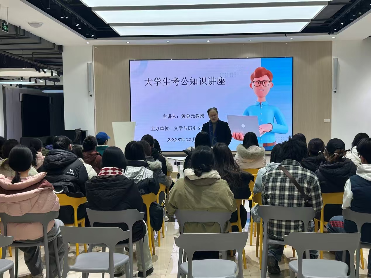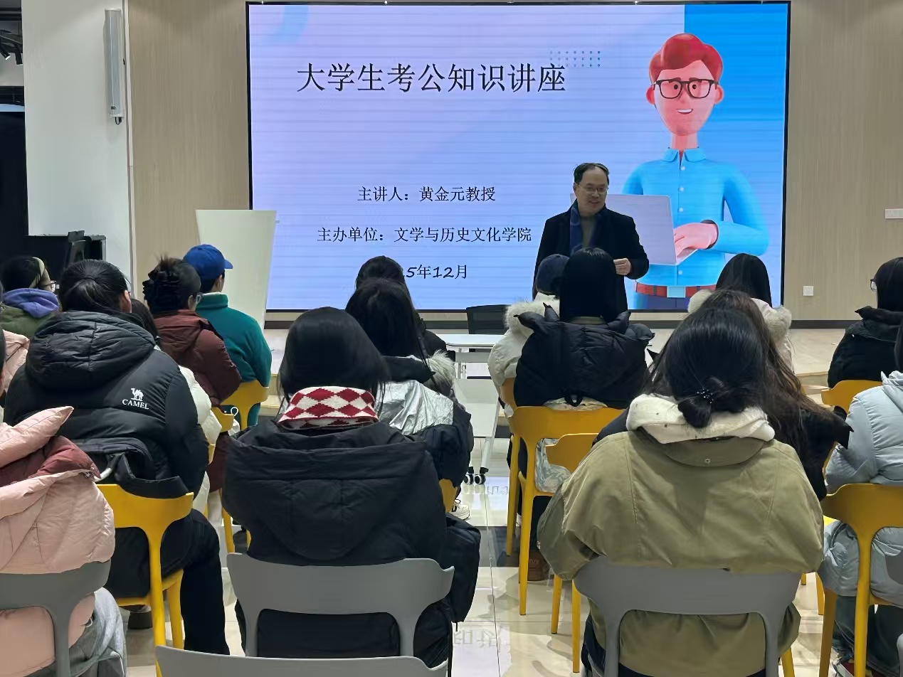 讲座现场,黄金元教授结合自身丰富的教学与研究经验,围绕公务员考试的报考政策、岗位选择、考试科目重难点以及备考规划等核心内容展开详细讲解。针对文学与历史相关专业学生的考公优势与适配岗位,教授进行了精准分析,同时分享了行测答题技巧、申论写作方法等实用备考策略,并结合历年真题案例,生动阐释了考试中的常见误区与应对思路。