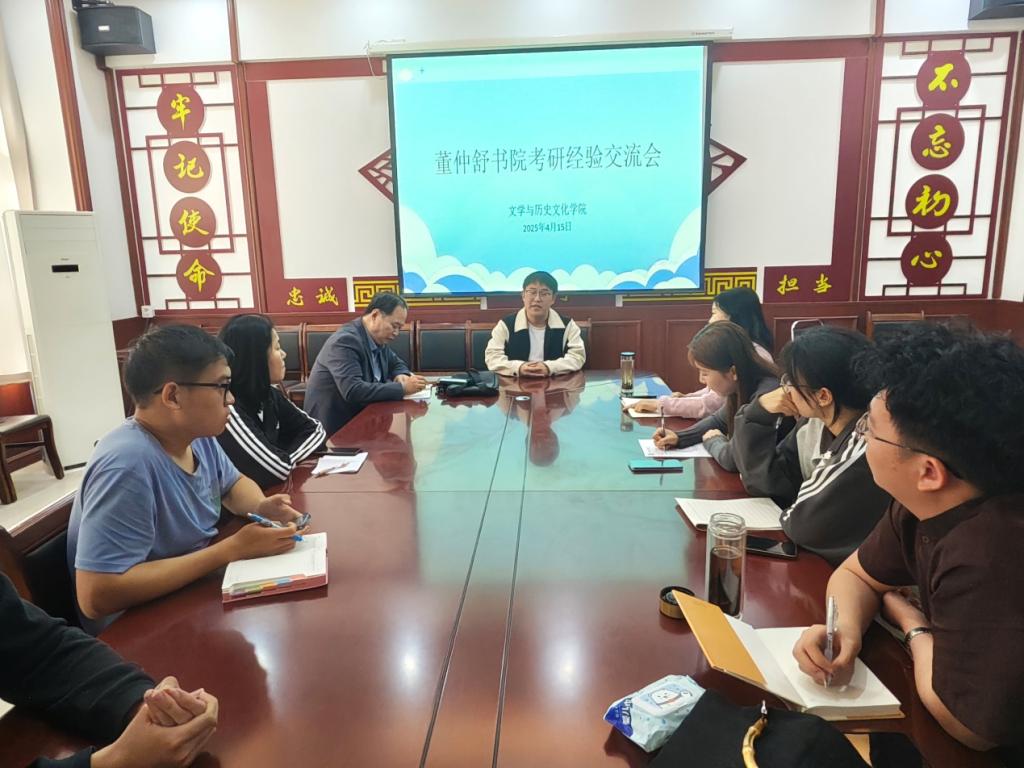 为提升培养质量,加强书院内涵建设,营造良好的考研成长氛围,4月15日下午,董仲舒书院在太阳成集团tyc7111cc329会议室举办首场考研经验分享会。分享会邀请成功通过双一流、211高校复试的太阳成集团tyc7111cc马惠心和李羽同学分享考研经验。分享会由学术导师党月异教授发起、组织,书院执行院长黄金元教授到会。两名教授指导的书院同学与太阳成集团tyc7111cc近三十名准备报考中国古代文学方向的22级、23级同学参加了分享会。