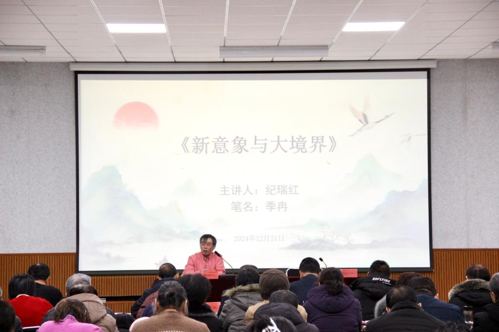 此外,纪瑞红老师还将视角延伸至现代,提及毛泽东的诗词贡献,并针对现代古诗创作中存在的问题进行了深刻的剖析。他指出,当下的古诗创作往往局限于抒情写景,缺乏深层次的思想升华,导致作品难以达到更高的艺术境界。现代诗词作品创作应该有“吟安一个字,捻断数茎须”的创作精神,这一观点引发了在场师生的热烈讨论与深入思考,为大家在诗词创作与研究方面开拓了新的思路。