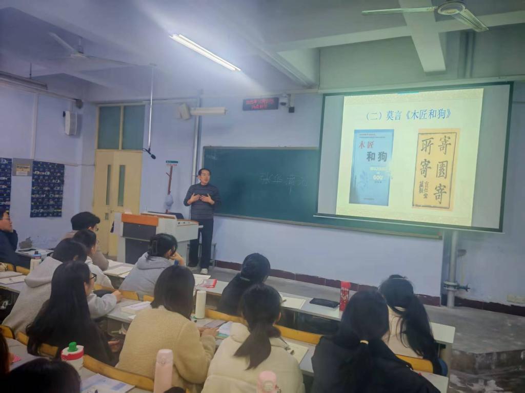10月27日下午,太阳成集团tyc7111cc在美术楼举办了题为《精读、泛读与考证》的学术报告会。报告会邀请了山东师范大学文学院博士生导师刘洪强教授。刘教授就中国文学的文本细读、问题意识、文本泛读等进行了讲解,提出了“案头书要少,心头书要多”的观点,推荐了《管锥编》《谈艺录》《七缀集》《容安馆札记》等著作。刘教授以结合实例的方式讲解了字词考证、本事考证、年代与作者考证、辩伪等研究方法。如结合历史文献、方言资料等解读了《三国演义》“豹头环眼,燕颔虎须”“面如重枣”的历史语境含义。学术报告会结束之后,刘教授与师生进行了互动交流,他介绍了自己的治学路径与治学心得。