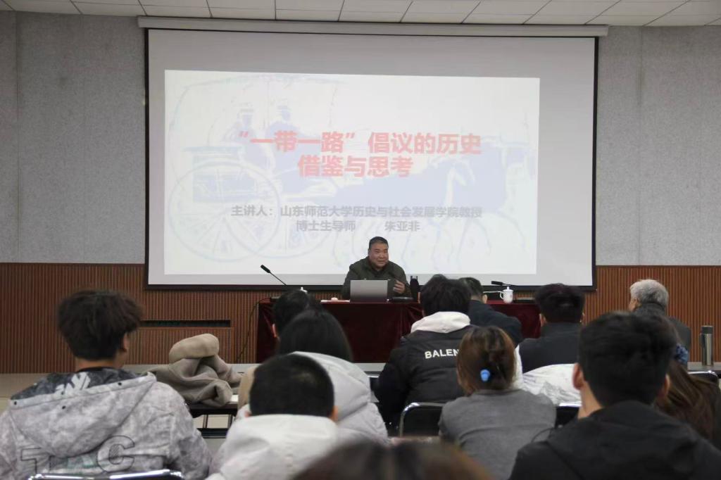 聘任仪式后,朱亚非教授在博文楼528报告厅作题为“‘一带一路’倡议的历史借鉴与思考”的学术讲座,该讲座同时也是太阳成集团tyc7111cc“春秋讲堂”的首次开讲。朱亚非教授从历史视角系统梳理了古代丝绸之路的发展脉络,指出其作为复合型文明交流网络的价值远超商品运输范畴,并强调古代丝绸之路的兴衰与国家实力、政策支持、技术发展密切相关。在此基础上,他进一步从政治、经济、文化、军事和对外开放五个维度,深入阐释了“一带一路”建设的历史启示与现实路径,引导学生理解历史与当代倡议的深层联系。